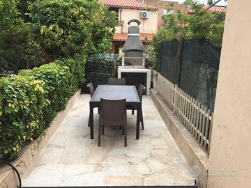 Appartamento elegante e accogliente ideale per 4 persone, situato in via Sicilia, una zona residenziale, tranquilla al centro di San Teodoro, adatto alle persone di tutte le età e alle famiglie che amano la pace e il relax. Dista dal centro di San Teodoro e da tutti i servizi (supermercati, farmacia, banca, bar, ristoranti ecc) 200 metri. L'appartamento si trova al primo piano, arredato e dotato di tutti i comfort, è così composto: - Zona giorno con cucina all'americana. L'angolo cottura è accessoriata con piatti, bicchieri, posate, mestoli, tazze per il the e il latte, tazzine per il caffè, pentole, moka, forno, frigo-freezer. Dal soggiorno, dotato di un divano letto, si accede su una terrazza arredata con un divano in rattan e un tavolo con sedie. - Zona notte: camera matrimoniale con balcone, camera doppia con due letti singoli e bagno comodo. Al piano terra sul retro è presente un giardino privato con doccia esterna, barbecue, un tavolo con sedie e cantina con all'interno la lavatrice. Esternamente è presente un comodo parcheggio.