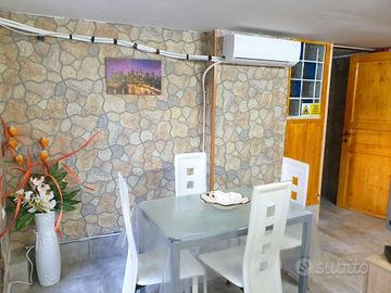 La struttura, con accesso indipendente, è un Trilocale finemente arredato in stile moderno e composto da due ampie camere da letto matrimoniali ed all'occorrenza comunicanti, armadio a muro, un bagno con doccia, angolo cottura attrezzato con pentolame, posate, piatti, bicchieri e tutto l'occorrente necessario per cucinare, tavolo e sedie, forno, frigorifero con congelatore, ampio giardino corredato con gazebo, tavolo e sedie per mangiare comodamente all'aperto nelle calde giornate estive.