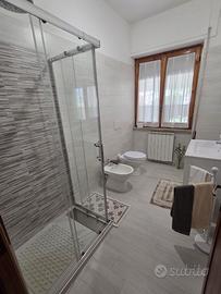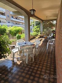 Villa accogliente per brevi soggiorni o trasferte di lavoro Composta da tre camere da letto (massimo 10 persone ), due bagni, cucina , soggiorno e ampio terrazzo con zona relax. Parcheggio gratuito per auto a pochi metri dall'ingresso principale con possibilità di parcheggio interno per moto e bici (su richiesta) , dog friendly. In poco meno di 1 km si raggiungono sia il centro città che il mare.
