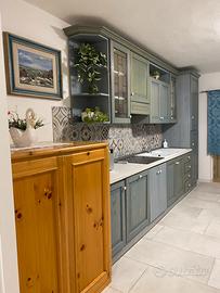 Composto da cucina completa di elettrodomestici, salotto con divano letto e tv a schermo piatto,