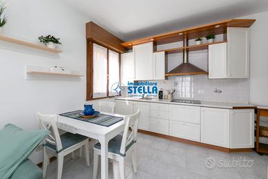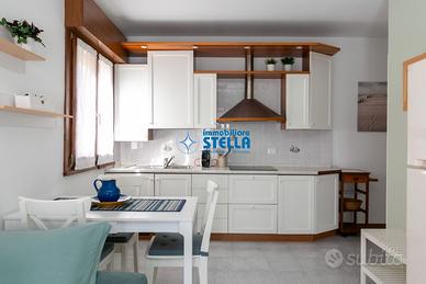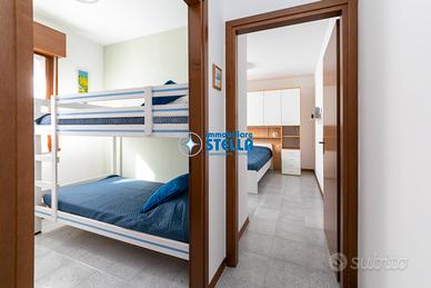 Accogliente soluzione abitativa recentemente ristrutturata al primo piano a soli 200 metri dal mare. L'appartamento propone una zona giorno con angolo cottura attrezzato e divano, la zona notte invece è composta da due camere da letto, una matrimoniale ed una con letto a castello, ideale per ospitare famiglie di 4 persone, presente inoltre un bagno finestrato con box doccia. In dotazione anche climatizzatore, tv e forno a microonde. Posto auto e posto spiaggia inclusi. CIN: IT027019B48L2KEQVY CIR: 027019-LOC-11358