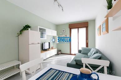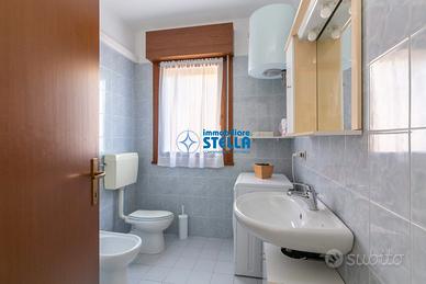Accogliente soluzione abitativa recentemente ristrutturata al primo piano a soli 200 metri dal mare. L'appartamento propone una zona giorno con angolo cottura attrezzato e divano, la zona notte invece è composta da due camere da letto, una matrimoniale ed una con letto a castello, ideale per ospitare famiglie di 4 persone, presente inoltre un bagno finestrato con box doccia. In dotazione anche climatizzatore, tv e forno a microonde. Posto auto e posto spiaggia inclusi. CIN: IT027019B48L2KEQVY CIR: 027019-LOC-11358