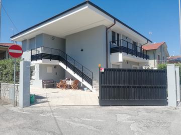 A meno di 2 minuti dal mare,(150 mt.) facilmente raggiungibile con il sottopasso,in pieno centro e nella zona residenziale più bella di Marotta"località balneare tra Fano e Senigallia": affitto a famiglie per vacanze, stupendo appartamento che può ospitare fino a 8 /9 persone, di 116 mq(praticamente tutto il piano terra del villino), è TUTTO RISERVATO ED ESCLUSIVO dell appartamento:.. ingresso indipendente,riscaldamento autonomo,giardino di 98 mq tutto recintato e privato, con annesso gazebo e barbecue per pranzi e cene all'aperto,dondolo,giochi per i bambini, più zona relax, 2 posti auto interno. 3 ampie camere, servizio, enorme zona giorno con cucina componibile, forno tradizionale, frigo, lavastoviglie,congelatore e penisola per prima colazione. L'appartamento è dotato di aria condizionata, zanzariere e ventilatori a soffitto in tutte le stanze, stoviglie complete, cuscini,coperte e la biancheria è fornita!Inoltre: connessione wifi, lavatrice,stendibiancheria, phone, ferro da stiro con asse, stereo, microonde,aspirapolvere,2 culle,2 seggioloni, passeggino,portone blindato,cassaforte, 3 TV, 3 biciclette a disposizione (due con seggiolino per bimbi; 1 anteriore e 1 posteriore)...