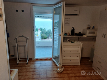 Affittasi in villa, al piano inferiore stanza matrimoniale completamente indipendente con servizi e veranda privata sul giardino davanti al mare. La camera e' dotata di aria condizionata, tv satellitare, wifi, macchina caffe', frigorifero, tostapane, bagno completo in camera, parcheggio privato, a 7 km da Santa Maria di Leuca, localita' Marina di Novaglie a 200 mt dalla bellissima baia di Novaglie disponibilita' da meta' maggio a fine settembre. Maggio 300 euro a sett. Giungno 400 a sett. Luglio 450 a sett. Agosto 500 a sett. Settembre 400 a sett. Possibilita' colazione in camera telefono 3347291230. Vedi google " villa etta gagliano del capo "
