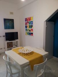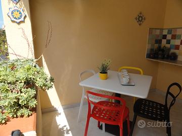 Appartamento comodo, luminoso, accogliente, ben arredato e accessoriato, perfetto per quattro persone: soggiorno-cucina, due camere da letto indipendenti separate da un disimpegno (una matrimoniale e una con due letti gemelli che all'occorrenza diventano un secondo letto matrimoniale), bagno con comoda doccia, ripostiglio e veranda attrezzata di tavolo e sedie da esterno, climatizzazione in tutte le stanze, zanzariere alle finestre delle camere da letto, microonde, lavatrice ... Si trova nel centro di San Vito, e panificio, farmacia, negozi, servizi si trovano nelle immediate vicinanze. Dista dal mare circa 250 metri (tre minuti a piedi). Si affitta settimanalmente e ospita un massimo di 4 persone.