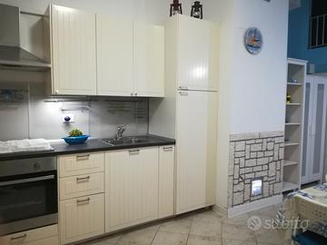 Dotata di tutti i comfort, posta la piano terra, ristrutturata ed arredata come da foto, composta da ampio soggiorno con zona relax TV e due divani, zona cucina attrezzata con tavolo e sedie, wc doccia e due comode camere matrimoniali. Climatizzata