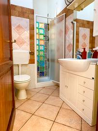 L'appartamento, è situato al primo e ultimo piano dello stabile è dotato di un soggiorno con angolo cottura e divano letto ad una piazza e mezzo, una camera da letto matrimoniale con bagno interno, una cameretta con due letti singoli ed un secondo bagno, accessibile dal soggiorno.