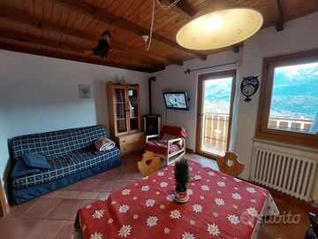 L'appartamento si trova a Carano, ha una superficie di 65 mq, dispone di cucina ben attrezzata fornita di tutti gli elettrodomestici (compresa lavastoviglie, forno a micronde), 2 camere, bagno con cabina doccia spaziosa, wifi, zona giorno con stufa a pellet e divano.