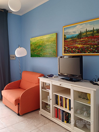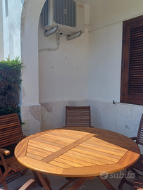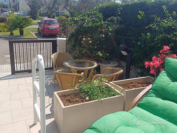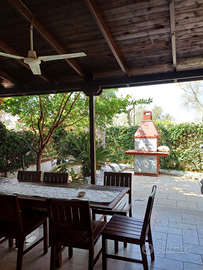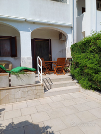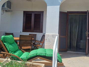Villetta accogliente situata in villaggio turistico a San Foca a soli 900 metri dal mare. L'abitazione è composta da un luminoso soggiorno con angolo cottura, due camere matrimoniali e un bagno. All'esterno, la proprietà vanta due giardini: uno anteriore con divanetto in vimini e uno posteriore dotato di barbecue, veranda, tavolo e doccia esterna, ideali per rilassarsi all' aperto. La villetta è inoltre equipaggiata con condizionatori in tutte le stanze, box doccia, lavatrice, zanzariere per il massimo comfort.