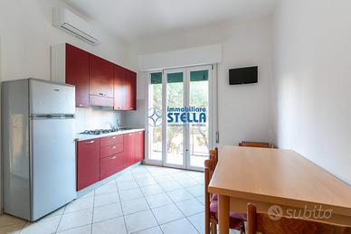Appartamento al secondo piano di una palazzina situata nel centro di Jesolo. L' immobile è composto da una spaziosa camera matrimoniale più letto a castello ed un bagno finestrato con box doccia. Completa l'immobile un' ampio soggiorno dotato di angolo cottura con accesso ad una terrazza con affaccio su Via Bafile. Appartamento accessoriato di aria condizionata in soggiorno ed anche in camera, lavatrice, e tv. Posto auto compreso. CIR: 027019-LOC-08540 CIN: IT027019B4B7LP34UO CLASSE G kWh 227.87