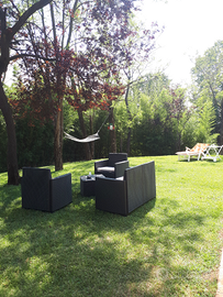 periodi splendido bilocale a piano terra in collina all'interno di una casa vacanze. Possibilità di utilizzo barbecue e tavoli all'esterno con porticati ed ombrelloni. Per giornate in relax e totale privacy. Disponibile appartamento da 5 posti letto e altri 7/8 posti letto per gruppi al primo piano. Fornitura di biancheria da letto e da bagno.