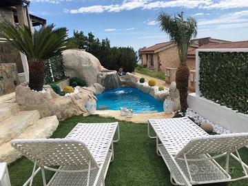 Indimenticabile vacanza in Sardegna, incantevole e lussuoso villino con panorama mozzafiato. Fino a 6 persone. Patio attrezzato e arredato per trascorrere indimenticabili cene nell'eleganza e nella meraviglia esclusiva della costa orientale Sarda. Il villino è valorizzato dal suo eden, un giardino, incantevole e privato con panorama sulla costa, dotato di SPA privata, piscina tra le roccie, con idromassaggio e cascata, zona relax dove rigenerare il proprio spirito. La presenza di numerosi divani e cuscini rende la vivibilità degli ambienti esterni estremamente confortevole per una vacanza da sogno. Al suo interno qualsiasi comfort, nulla escluso. Soli 5 min a piedi per raggiungere la spiaggia attrezzata, ristoranti, boutiques, aree sportive, con campi da calcetto, tennis, mini golf ecc., market, gelaterie e porticciolo turistico.
