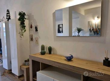 Appartamento dotato di tutti i comfort, costituito da un ampio soggiorno cucina con angolo cottura e divano letto, smart TV, tavolo allungabile, 6 sedie, 1 bagno con box doccia, 1 cameretta con letto a castello, 1 camera matrimoniale (letto contenitore) con TV. 2 Balconi e Posto Auto privato scoperto con cancello automatico. Videocitofono, Riscaldamento autonomo, Internet wifi, Lavatrice, Macchina Caffe Espresso.
