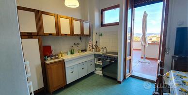 L'appartamento è molto arioso e luminoso, composto da un ingresso, cucina abitabile con porta finestra che da' l'accesso ad una terrazza molto ampia con gazebo, tavolo e sedie per poter pranzare all'aperto.