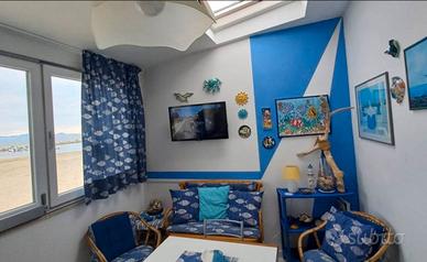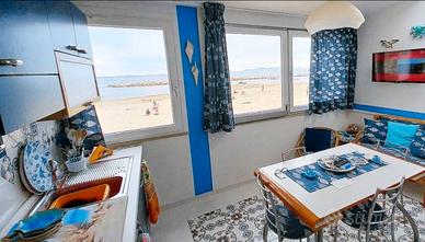 Via Solferino Follonica Tutto su questa proprietà Questo appartamento è una vera gemma fronte mare, pronto ad accogliere chi desidera vivere un'esperienza unica in una posizione irripetibile. L'appartamento è nella vivace zona Senzuno, un quartiere storico di Follonica unico nel suo genere e profondamente rinnovato in questi ultimi anni. La casa è situata al primo piano, direttamente sulla spiaggia libera. Immaginate di vivere sopra la spiaggia, di addormentarvi al suono delle onde e di ammirare tramonti spettacolari dalla comodità della vostra cucina. Preparatevi a questa atmosfera perchè è quello che si respira in questo appartamento. La cucina ha una intera parete a finestre sul bellissimo golfo di Follonica, così le vostre cene vista mare al tramonto saranno indimenticabili, e scatterete foto incredibili con visuale dell'isola d'Elba, di Punta Ala e, nelle giornate migliori, della Corsica. I panorami delle foto dell'annuncio sono scattati proprio dalla cucina dell'appartamento, che ne fanno una vera gemma fronte mare, pronto ad accogliere chi desidera vivere un'esperienza unica in una posizione irripetibile. La rigogliosa pineta marittima è a poca distanza (luogo ideale per bambini molto piccoli), e con brevi passeggiate lungomare si raggiungono spiagge circondate dalla sola vegetazione. L'appartamento è situato al primo piano di una palazzina di grande impatto visivo. Ristrutturato completamente da 2 anni, con la cucina e i due bagni rifatti completamente, si presenta con un tocco di mare in ogni stanza, pieno di luce e di colori, ventilato anche nei mesi più caldi grazie alla sua posizione. Due camere, la prima con letto matrimoniale e letto singolo, la 2' con letto matrimoniale. Questa camera porta al primo bagno con i servizi igienici, mentre il secondo servizio ha water/bidet, cabina doccia e lavabo. L'appartamento dispone di TV, lavastoviglie, lavatrice, piano cottura a induzione, forno classico microonde, macchina espresso e due