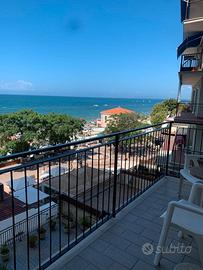 Follonica, posizione centralissima (Palazzo Tre palme) Via Dante n:58. Terzo piano con ascensore. Affittiamo appartamento fronte mare, confortevole, funzionale molto spazioso con 8 posti letto a pochi passi dalla bellissima pineta di ponente (centrale) e dalla spiaggia.