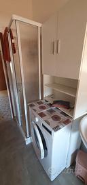 La cucina è accessoriata con un piano cottura a gas metano, forno, frigo. La camera da letto ampia ha un letto matrimoniale,