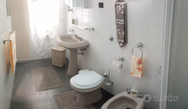 Bagno molto spazioso con doccia, lavatrice e tutto il necessario.