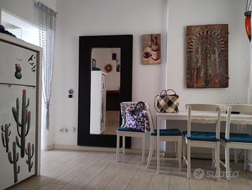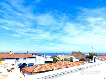Villetta ben arredata, 50mt dalla spiaggia, su due livelli, al piano superiore condizionatore, 4 posti letto, camera matrimoniale, cameretta, soggiorno con divano letto, 2 televisori, cucina con lavastoviglie, doppi servizi, veranda grande con doccia calda, balcone, terrazza, WIFI, lavatrice, fornetto elettrico,