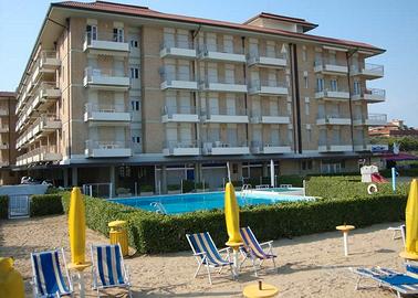 Appartamento con le caratteristiche di una "Junior Suite", sito al condominio "ZETA RESIDENCE" di Jesolo frontemare con piscina, a pochi passi da p.zza Milano, dotato di spiaggia privata con 2 piscine, una per adulti ed altra per bambini. Appartamento con una splendida vista frontemare, sito al 3° piano con ascensore. Il suddetto immobile è stato ristrutturato completamente con un nuovo impianto di climatizzazione, calda e fredda, con split a soffitto, sia in camera da letto che nel soggiorno, coibentazione completa di tutte le pareti e dei soffitti, tali da rendere l'APE di classe B; nuovo ed elegante arredamento accessoriato con piano induzione, lavastoviglie, forno elettrico, microonde, TV color e divano letto per una persona in soggiorno, nonchè Tv color in camera da letto, cassaforte, mentre i pavimenti dell'appartamento sono in legno "Rovere". Il bagno con pavimento e pareti in ceramica, è dotato di lavatrice, phon automatico, specchio ingranditore, porta salviette elettrico, w.c, bidet e doccia a pavimento con ante apribili. La camera da letto dispone di un letto matrimoniale con 2 armadi a ponte, oltre all'installazione di un pannello divisorio in legno, ove è stata ricavata una nicchia con due letti bassi. La porta di ingresso è blindata e le pareti del soggiorno sono in tinta rasata. La tenda e le persiane sono elettriche, i serramenti in PVC con vetri antisfondamento. In realtà l'appartamento risulta insonorizzato e ci sono due terrazze, delle quali una fronte vista mare abitabile con tavolino e sedie, ed altra terrazza in camera da letto con vista laterale sul mare. Sono presenti 4/5 posti letto in totale poiché il soggiorno dispone di un divano letto utilizzabile per la quinta persona.