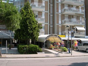 Appartamento su Residence centrale piazza Milano frontemare, 3° piano con 2 ascensori, tutti i confort, 2 camere matrimoniali per 5 postiletto. Soggiorno con divanetto, TV 32" e decoder Sat. Clima con pompacalore. Angolocottura con frigo e cella freezer, lavastoviglie per 12 coperti, bagno con box doccia, acquacalda con boiler, lavatrice. Terrazzo vivibile con tende para sole, tavolo 4 sedie frontemare. Piscina per adulti e bambini, spiaggia privata attrezzata con ombrellone 2 lettini 1 sediasdraia. Portineria attiva con custode e