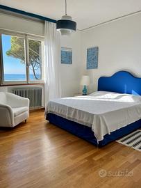 L'appartamento è composto da: ingresso, soggiorno-pranzo, cucinino, wc, bagno con vasca, 2 camere matrimoniali e 1 camera con il letto singolo.Ampio terrazzo frontemare e uno latomare.