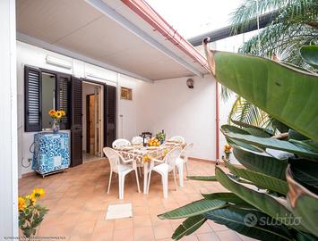 Svegliarsi con il mare negli occhi e raggiungere la sabbia dorata in pochi passi: questo è il vero lusso di Villetta Fronte Mare White Beach. Una splendida casa indipendente a soli 100 metri dal mare cristallino di Porto Cesareo, ideale per chi desidera vivere la magia del Salento tra comfort e relax. Situata al piano terra, la villetta dispone di giardino privato con patio arredato e barbecue, perfetto per colazioni al sole e cene sotto le stelle. Gli interni, luminosi e accoglienti, sono arredati in stile marinaro con finiture di pregio. Composta da una camera tripla, ampia zona living con divano letto, una matrimoniale con doppio letto apribile e cucina completamente attrezzata, offre tutto ciò che serve per una vacanza senza pensieri. Il bagno moderno dispone di doccia, bidet e lavatrice. Tre climatizzatori garantiscono il massimo comfort in ogni ambiente. A pochi minuti si trovano bar, ristoranti e supermercati, mentre la spiaggia libera e i lidi attrezzati sono raggiungibili a piedi. Villetta Fronte Mare White Beach è un rifugio elegante e tranquillo, dove il mare non si guarda soltanto, ma si vive -- tra luce, profumi mediterranei e il fascino autentico del Salento.