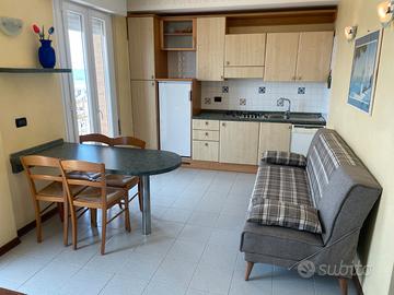 Questo appartamento è stato ristrutturato completamente con un nuovo impianto di climatizzazione, calda e fredda, con split sia in camera da letto che nel soggiorno, coibentazione completa di tutte le pareti e dei soffitti, tali da rendere l'APE di classe B; nuovo arredamento accessoriato con piano induzione, lavastoviglie, forno elettrico, microonde, TV color e divano letto per una persona in soggiorno e Tv color in camera da letto; pavimenti dell'appartamento in legno "Rovere" mentre nel bagno con pavimento e pareti in ceramica, è installata la lavatrice, con phon automatico, specchio ingranditore, con porta salviette elettrico, w.c, bidet e doccia a pavimento con ante apribili.