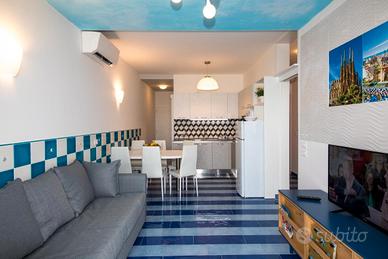 L'appartamento MEXICO GAUDI' è ubicato al 4° piano nell'angolo sud / est del fabbricato, servito da ascensore, modernamente arredato, dotato di ogni comfort e così composto:
