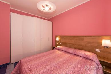 Altra camera con letto matrimoniale, attrezzata con parete armadio di ca. mt. 2,20, testiera in rovere con due aplique e luci direzionali, nonché porta finestra con altra terrazza vista mare di mq. 2,50. Posto auto privato in garage condominiale h: 1,85.