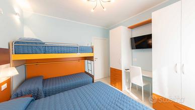 Camera da letto principale con letto matrimoniale e letto a castello accessibile con una scala in legno, inoltre sono presenti due armadi da cm 90 e cm 60, con relativi cassetti, scrittoio e TV color.