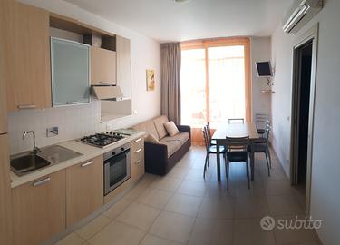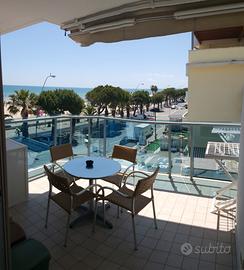 Delizioso appartamentino con vista direttamente sulla spiaggia per godersi appieno la meraviglia del mare, l'appartamento si compone di un Luminoso Soggiorno con ampio terrazzo attrezzato vista Mare con possibilità di mangiare fuori, una Cucina con angolo cottura attrezzato, una Camera da Letto Matrimoniale con Armadio, Aria Condizionata* e cassetta di sicurezza , una Cameretta con letti a castello, Aria Condizionata* e Armadio, un Bagno munito di box doccia e finestra, tavolo, sedie e divano . La proprietà comprende una corte condominiale dove parcheggiare bici o altro. 4 Posti Letto Note: NO ANIMALI.