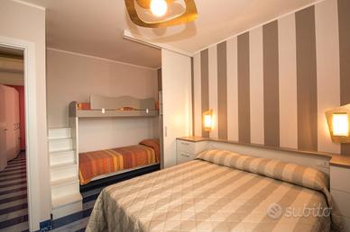 Altra camera con letto matrimoniale, attrezzata con parete armadio di ca. mt. 2,20, testiera in rovere con due aplique e luci direzionali, nonché porta finestra con altra terrazza vista mare di mq. 2,50. Posto auto privato in garage condominiale h: 1,85.