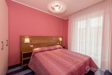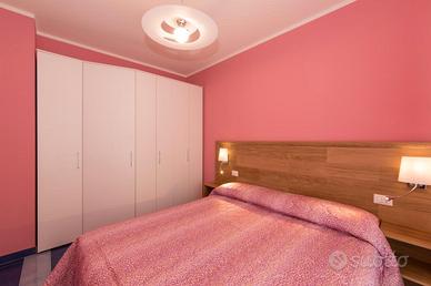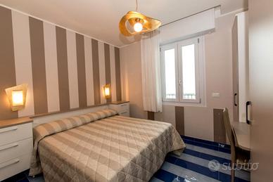Altra camera con letto matrimoniale, attrezzata con parete armadio di ca. mt. 2,20, testiera in rovere con due aplique e luci direzionali, nonché porta finestra con altra terrazza vista mare di mq. 2,50. Posto auto privato in garage condominiale h: 1,85.