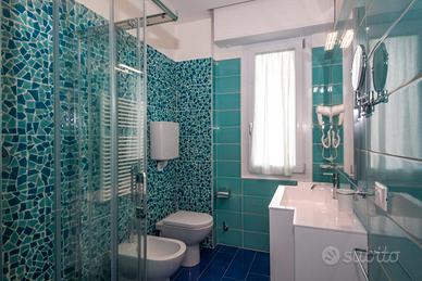 L'appartamento inoltre è dotato di: serramenti in PVC con vetri antisfondamento, boiler elettrico da lt. 80, lavatrice, lavastoviglie, cucina a gas a quattro fuochi, microonde, frigorifero con cella freezer, phone e termo elettrico in ogni bagno, persiane elettriche, cassaforte murale, porte in legno da cm. 80, portoncino d'ingresso con sei chiusure in acciaio, porta valigie in PVC, vettovaglieria per 6 persone, tenda da sole elettrica e codice privato per punto internet / wifi e TV satellitare.