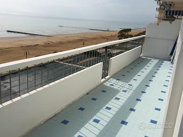 ampio soggiorno con angolo cottura dal quale si può accedere direttamente alla terrazza fronte vista mare di ca. mq. 21, TV color 40 pollici e divano letto; un bagno notte finestrato, completamente accessoriato, con box doccia da cm. 90 x cm. 80.