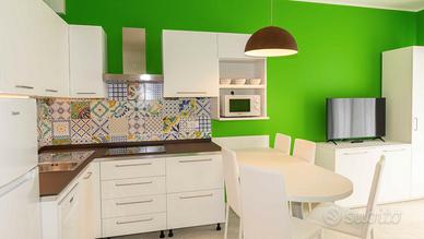 L'appartamento inoltre è dotato di: serramenti in PVC con vetri antisfondamento, boiler elettrico da lt. 80, lavatrice, lavastoviglie, cucina a induzione, microonde, frigorifero con cella freezer, phon, persiane elettriche, cassaforte murale, porte in legno, portoncino d'ingresso con chiusura in acciaio, vettovaglieria per 6 persone, tenda da sole elettrica.