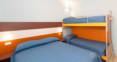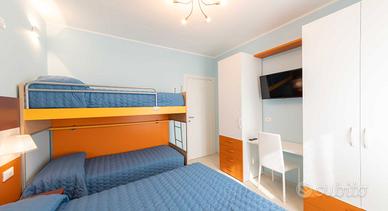Camera da letto principale con letto matrimoniale e letto a castello accessibile con una scala in legno, inoltre sono presenti due armadi da cm 90 e cm 60, con relativi cassetti, scrittoio e TV color.