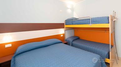 Camera da letto principale con letto matrimoniale e letto a castello accessibile con una scala in legno, inoltre sono presenti due armadi da cm 90 e cm 60, con relativi cassetti, scrittoio e TV color.