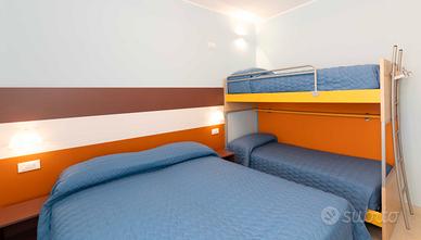 Camera da letto principale con letto matrimoniale e letto a castello accessibile con una scala in legno, inoltre sono presenti due armadi da cm 90 e cm 60, con relativi cassetti, scrittoio e TV color.