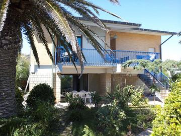 N.B. SOLO CONTATTI TELEFONICI NO email, NO WhatsApp, NO SMS! Chiamare il 335/8302721 VILLA FRONTEMARE CON 2 APPARTAMENTI N.B. DISPONIBILITA' Per 4 persone N. 1 : - dal 30 MAGGIO a fine SETTEMBRE Per 7 persone N. 2 : - dal 30 MAGGIO al 25 LUGLIO - dal 22 AGOSTO a fine SETTEMBRE DESCRIZIONE APPARTMENTI: N. 1) Appart. di 50 mq. A PIANO PRIMO (INVIO FOTO PER VISIONE) cosi composto: max 4 posti letto (no letti aggiuntivi - culle non fornite) con 2 camere da letto. Camera letto matrimoniale + seconda camera con letto a castello, bagno con doccia water con doccino/bidet incorporato, cucina/salotto con piccolo ballatoio terrazzino lato sud con tavolino e sedie . Aria condizionata. N. 2) Appart. di 65 mq. A PIANO TERRA (FOTO IN ANNUNCIO) cosi composto: max 7 posti letto (no letti aggiuntivi - culle non fornite) con 2 camere da letto. In una camera, letto matrimoniale + un letto a una piazza e mezzo, nella seconda letto matrimoniale + letto a castello, cucina, bagno, salotto con ampia vetrata su giardino e vista mare, con possibilità di mangiare all'aperto. Ventilatori (appartamento freschissimo non necessita di aria condizionata neanche in pieno agosto!) TV: grande a schermo piatto GARAGE: no All'esterno della villa ampi spazi di parcheggio gratuiti disponibili a tutte le ore proprio difronte all'ingresso. LAVATRICE: si. BIANCHERIA: non fornita. ANIMALI: consentiti. Di fronte casa Chalet per animali Luna Rossa CUCINA: completa di tutto CONSUMI E SPESE: tutto compreso POSIZIONE e SERVIZI: Zona nord, tranquilla e silenziosa, a pochissimi passi da centro, ristoranti, edicola negozi generi alimentari . La villa si trova esattamente di fronte allo Chalet Luna Rossa OMBRELLONE: è compreso un ombrellone con due sdraio presso Chalet servito PERIODO AFFITTO E ORARI: affitto solo estivo - settimane da sabato a sabato. Per consentire la pulizie, arrivo dopo le ore 15 e partenza entro le ore 10.