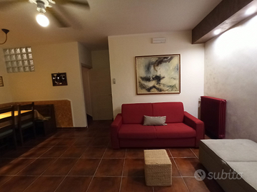 - ampia taverna con camino, divano letto nuovo con materasso in memory da 25 cm, tavolo da otto posti con panca in massello, televisore led, ventilatore a soffitto;