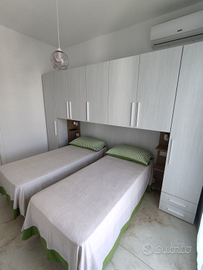 L'abitazione è composta da: due balconi entrambi con vista mare, dove si può pranzare o cenare ammirando le limpide acque Salentine, stanza matrimoniale, stanzetta con due posti letto, soggiorno, cucina e divano/letto, tutte le stanze sono munite di climatizzatori.