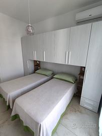 L'abitazione è composta da: due balconi entrambi con vista mare, dove si può pranzare o cenare ammirando le limpide acque Salentine, stanza matrimoniale, stanzetta con due posti letto, soggiorno, cucina e divano/letto, tutte le stanze sono munite di climatizzatori.