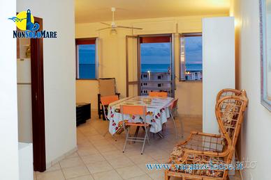 Situato all'interno di una moderna palazzina con ascensore, l'appartamento vacanza "Bellavista" è composto da un ampio salone vista mare con divano da due posti letto, bagno con box doccia, una cucina attrezzata con fornelli e stoviglie, una camera con letto matrimoniale e un'altra singola con doppi letti,e balcone attrezzato fronte mare.