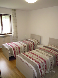 Affittasi per stagione estiva ed invernale appartamento di circa 70 mq per 4 persone a Predazzo, in valle di fiemme. L'appartamento è situato in zona tranquilla e soleggiata, dista 5 minuti a piedi dal centro del paese e dai principali servizi (bar tabacchi, panificio supermercato e farmacia) e 2 minuti dalla fermata dell'autobus/skibus; è composto da cucina completa di stoviglie e pentolame, soggiorno con caminetto a legna, 2 camere completamente rinnovate (1 matrimoniale e 1 doppia), bagno finestrato, 2 balconi, giardino e posto auto privato esterno. l'appartamento è dotato di tv lavatrice, stoviglie, lavastoviglie, coperte per i letti e biancheria per la cucina; non viene fornita la biancheria per i letti e per il bagno.