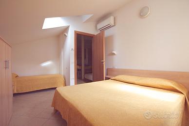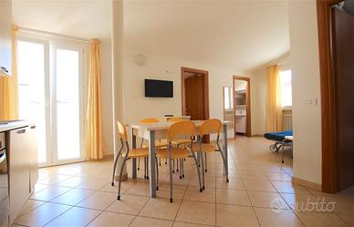Trilocale n.9 (4+2 posti letto)al secondo piano con ascensore. Composto da 1 Camera matrimoniale con terzo letto, 1 cameretta singola, 1 bagno, 1 soggiorno con divano letto matrimoniale, 1 Balcone, 1 posto auto riservato in garage sotterraneo, Aria condizionata, 1 bicicletta riservata, Wi-fi, Tv 32", Microonde.