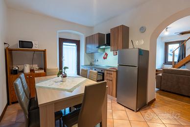 Primo livello: ampio soggiorno con una cucina dotata di ogni comfort nella prima stanza e un piccolo balconcino, nella seconda stanza un ampio soggiorno con un divano letto per due persone, Smart TV, una veloce connessione Wi-Fi e il primo bagno.