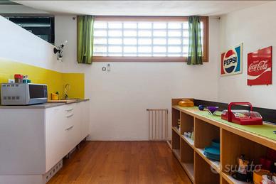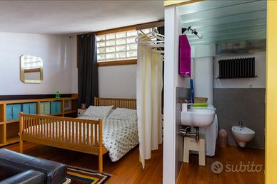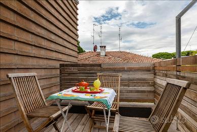 Loft in pieno centro a Cervia con balconcino, con ampio affaccio nel verde Si trova al secondo piano di una palazzina con altri 2 appartamenti. Si accede da una grande scala caratterizzata da un'enorme vetrata affacciata sul verde e da una scala privata. Al termine della scala si trova la cucina (con lavastoviglie e forno a microonde) e la zona giorno con grande tavolo. Da una porta a vetri si accede al balconcino con tavolino e sedie per mangiare all'aperto, con pavimentazione in legno. Il bagno con doccia divide la zona giorno dalla camera da letto e ha il tetto in vetro. La zona notte ha un letto matrimoniale e qui troverete il divanetto con tv. Appena ristrutturato, con aria condizionata e Wi-fi. Possiamo fornirvi un lettino con sponde e il seggiolone per i vostri bimbi o aggiungere un letto singolo. · mare 500 mt. · distanza dal centro 100 mt. · distanza da Mirabilandia 12,0 km. · distanza dalle Terme di Cervia 3,5 km. · parcheggio sulla via · servizi 100 mt.
