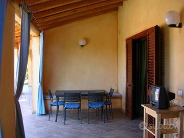 A San Teodoro Località Suaredda in Via Siviglia a due minuti dalla spiaggia della Cinta e dal Centro elegante Villetta posta su unico livello con ampio giardino su ambo i lati della casa , grande veranda ( mt. 8 x 4 ) fornita di elegante salottino, tavolo esterno e giardino con sdraio, barbecue e doccia esterna in pietra sarda. All'interno la villetta si presenta con Ampio soggiorno , divano letto e cucina a vista, camera matrimoniale e seconda camera utilizzabile sia sia da matrimoniale che da doppia, bagno con box doccia. Fornita inoltre di TV 32,lavatrice ,Microonde, phone, asse e ferro da stiro. Su richiesta altre foto via wz al 3381517637